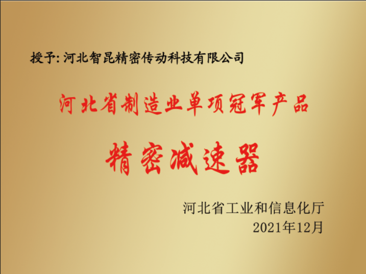 智昆科技-“精密減速器”入選第三批河北省制造業(yè)單項冠軍產(chǎn)品
